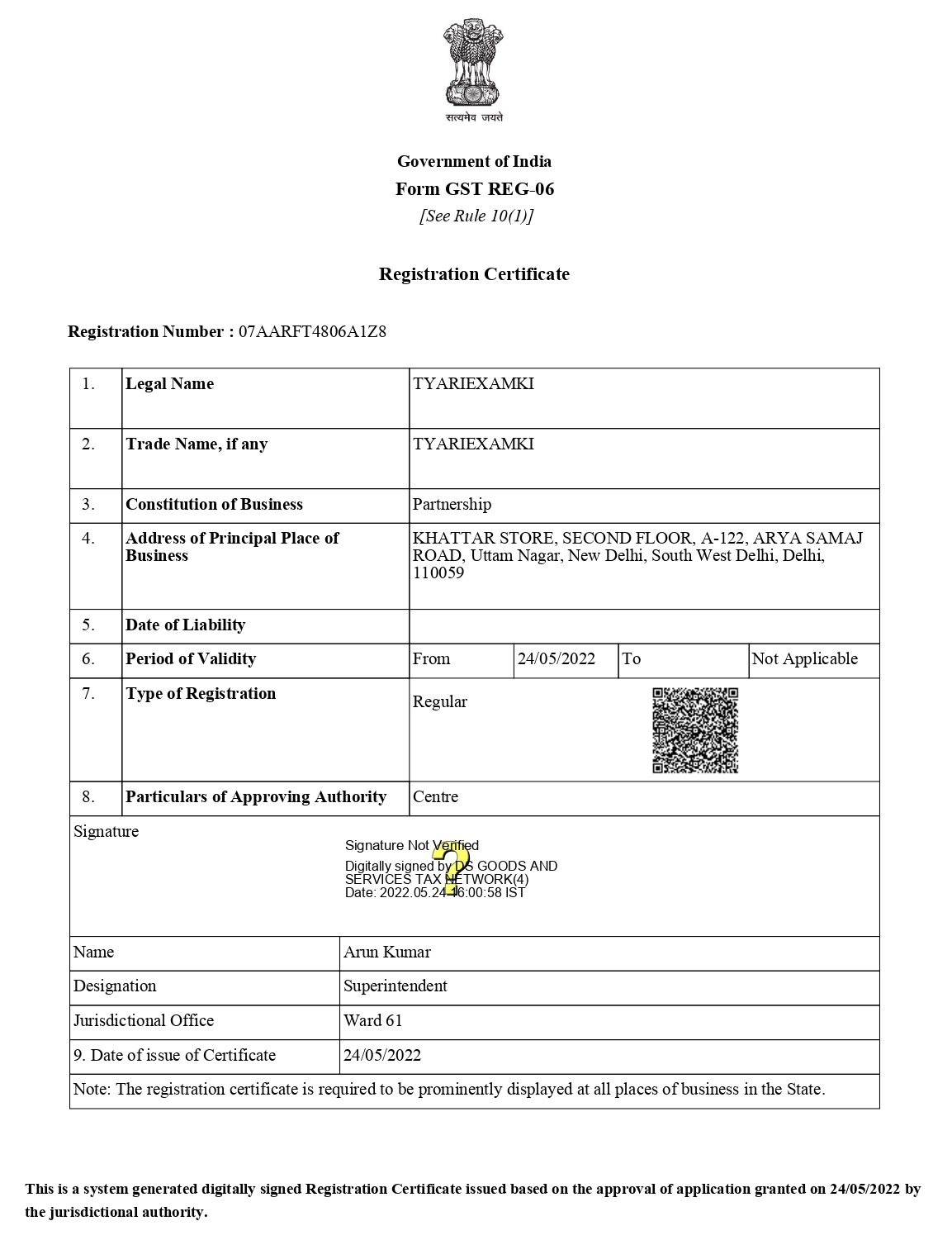 This certificate validates the successful completion of the online training course by Tyariexamki. It represents dedication, knowledge, and expertise in Trademark filing.